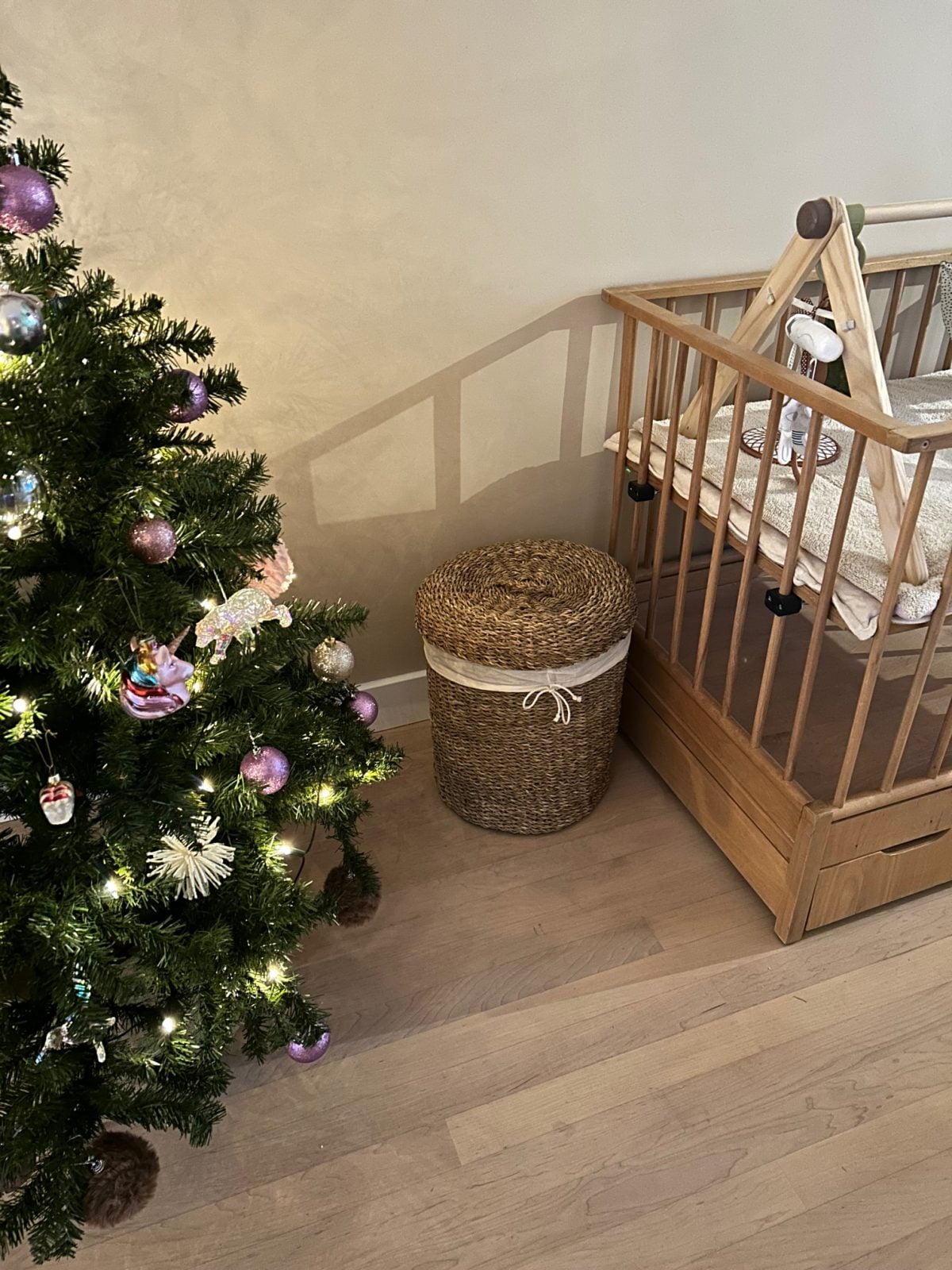 Inmiddels hadden we een hele duvelse bende aan speelgoed verzameld al dit eerste half jaar, dus daar kocht ik een mand voor bij H&M home. Het is volgens mij officieel een wasmand.