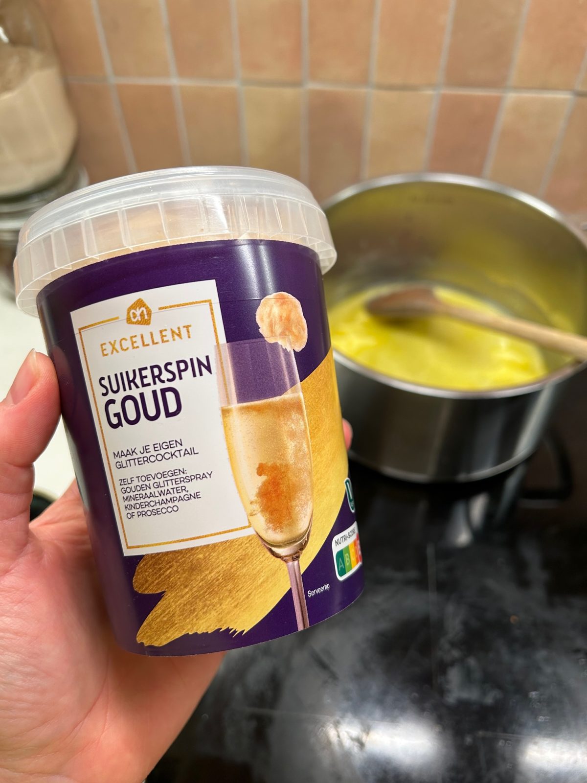 Zondagavond bereidde ik vast wat voor, voor eerste Kerstdag. De fam kwam dan bij ons voor een brunch. Ik kocht onder andere deze ‘gouden’ suikerspin om iets leuks mee te doen. Ik dacht voor op de slagroom van de warme chocolademelk ofzo. Maar, hoe misleidend is dit?! Je koopt een pot suikerspin GOUD, en toen zag ik ineens staan ‘zelf toevoegen: gouden glitter spray’. WTF. Alsof je dat in huis hebt haha. Er zat dus gewoon beige suikerspin in.