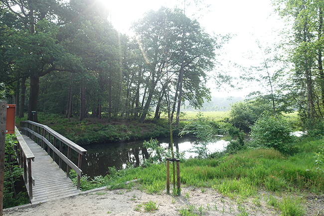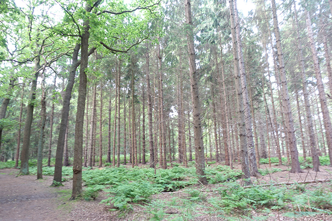 Ik loop het bos in tegenover hotel Tjaarda, waar we gisteren ook even zijn geweest.