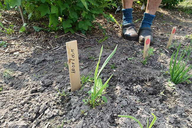De tuin in! Naast de grote bessenvelden is er ook een moestuin met wat kleine groenten en kruiden zoals knoflook en rabarber.