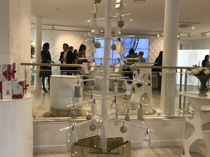 Er waren kerstverpakkingen om te vullen met dove producten, kleine mini producten in hele kleurrijke verpakkingen, prachtige foto’s van de Dove campagne, en twee heel bijzondere balies.