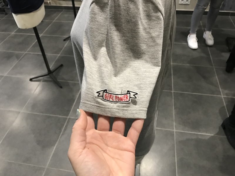 Ik kies een simpel grijs t shirt en kies een zin die door Dove is bedacht. Vertaald staat er; Een beetje Swag in mijn beauty. Dat vond ik wel geinig! Die tekst zet ik op de rug van het shirt in het goud, en op de mouw kies ik voor een simpel embleempje waarop Girl Power staat. Een slogan dat me toch altijd wel goed ligt na mijn fanatieke Spice Girls periode, en in deze tijd heeft het eigenlijk ook nog gewoon veel lading. Gek genoeg vond iedereen mijn ontwerpje zo leuk dat het merendeel het zelfde ging doen. Geinig toch, ouwe Emmy, totaal niet hip, tussen hippe bloggers, en ik set de trend. Ha!