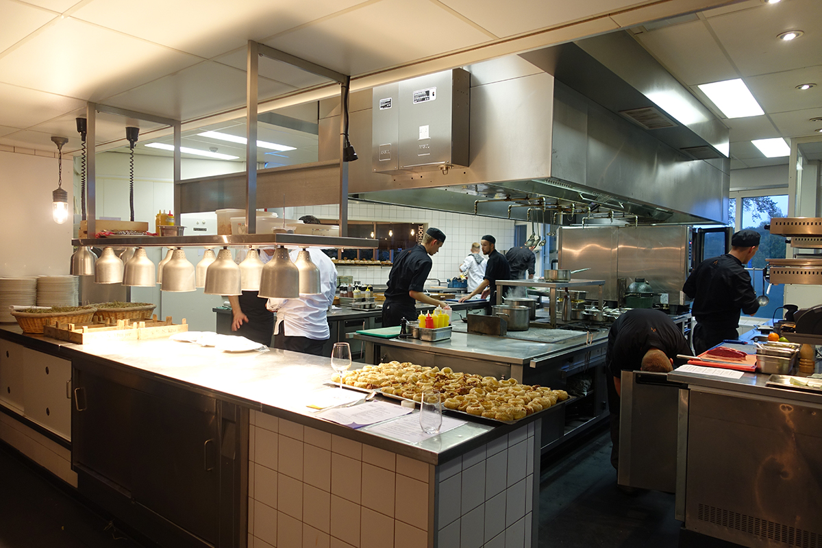 Ik mag even in de keuken kijken en de zes chefs spreken. Vanavond koken dus zes Bilderberg chefs met z’n allen in de Heeren van Harinxma. Dit zijn Tonny Berentsen*, Arjan Bisschop*, Richard de Vries, Stefan van Sprang**, Erik van Loo** en Wessel van Ruijmgaart. Ze zijn gewend om de leiding te hebben in hun keuken en vandaag moeten ze samenwerking! Per gang is één chef de baas en helpt iedereen mee. Er staat zo’n twintig man in de keuken vanavond, waar dat normaal gesproken ongeveer zes is bij De Heeren van Harinxma. Ik heb door de jaren heen veel goeds over dit restaurant gehoord, wilde er altijd nog eens eten en nu is dit wel een superleuke gelegenheid!