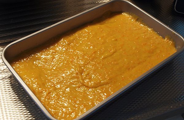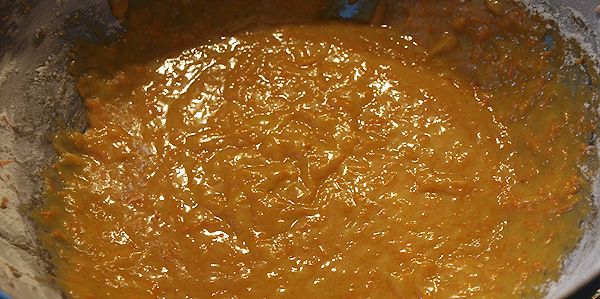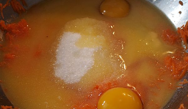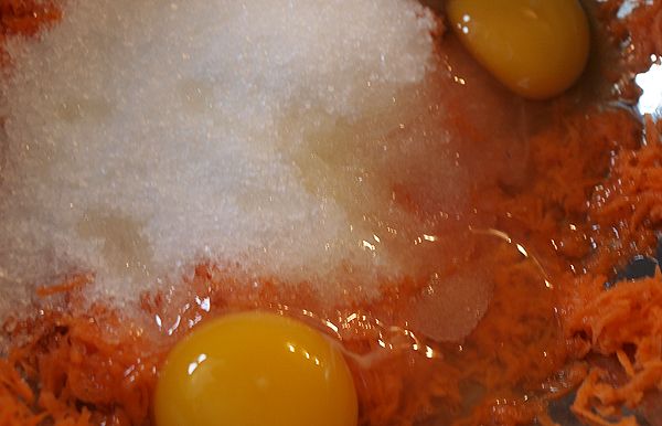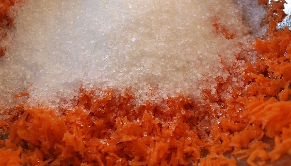 Dan schil en rasp je de wortel en gooi je de suiker erbij.
