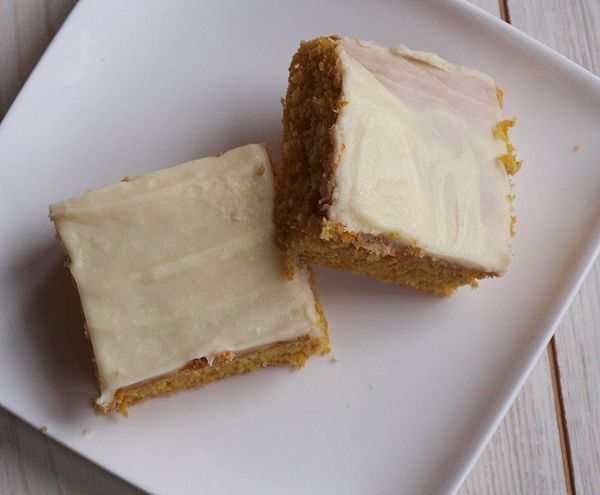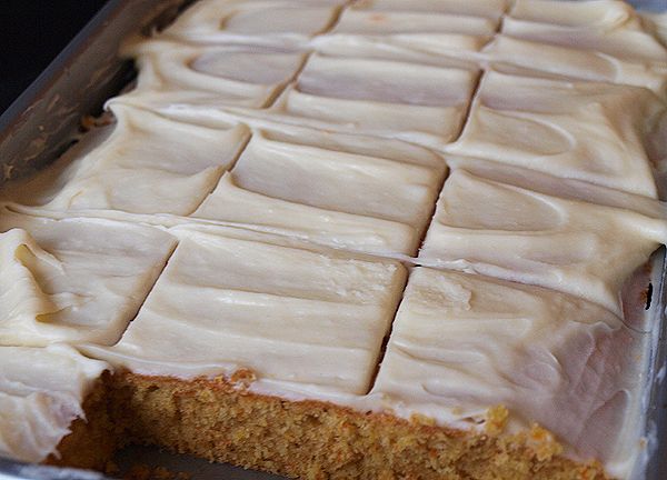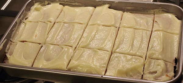 Cream cheese frosting eroverheen verdelen en in stukken snijden… KLAAR!