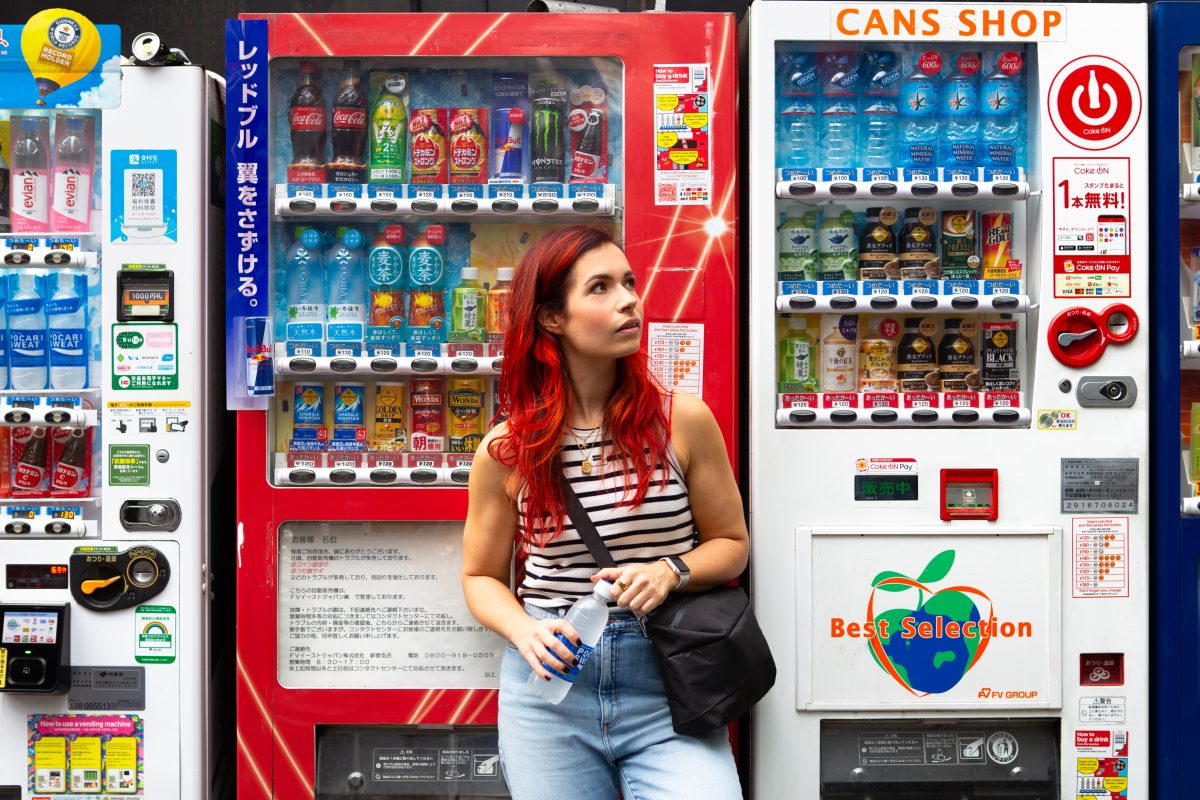 Een kleine ramp voor het milieu (want: kost superveel energie en al die flesjes zijn natuurlijk gemaakt van plastic), maar wel érg handig: de vending machines. Ik had er voor vertrek wel over gehoord, maar toen ik eenmaal in Japan was, verbaasde ik me vooral over de hoeveelheid ervan. Die dingen staan overal. Soms in groepjes bij elkaar, zodat je lekker veel aanbod hebt, stoms staat er een eenzame vendy in een park (wat echt een gek gezicht is, zo in het groen). Ze zien er soms ook echt tof uit, in Pokémon stijl of zo. We hebben er veel gebruik van gemaakt.