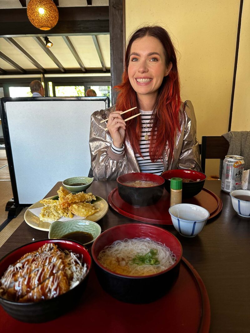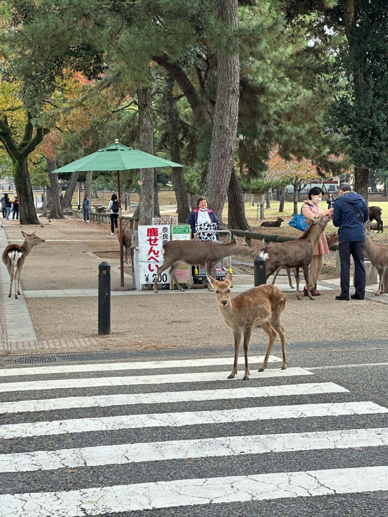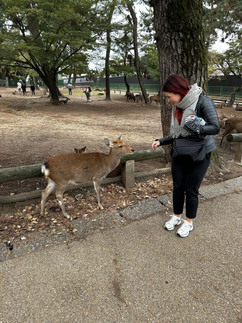 En over herten gesproken… Vanuit Kyoto gingen we een dag naar Nara. Brutale snuitjes, zachte neuzen. Ik smolt. Het is toeristisch, sure, maar soms mág iets gewoon precies zijn wat het is: lief, grappig, memorabel. Sowieso vond ik Nara mooi, met prachtige straatjes, en het park is ook echt de moeite waard. We aten bij een erg cute zaakje, het heette Kanoko.