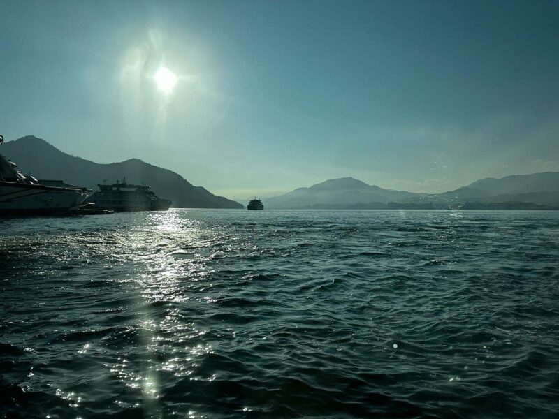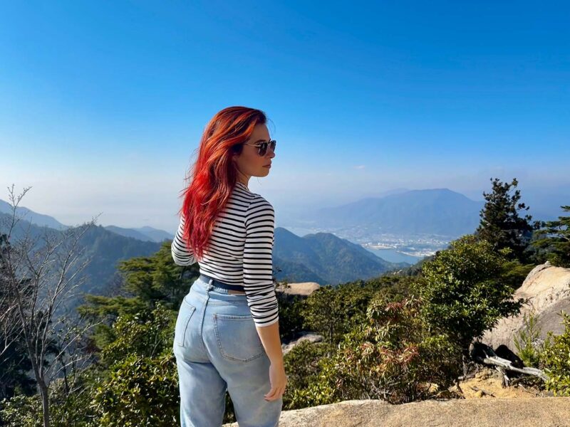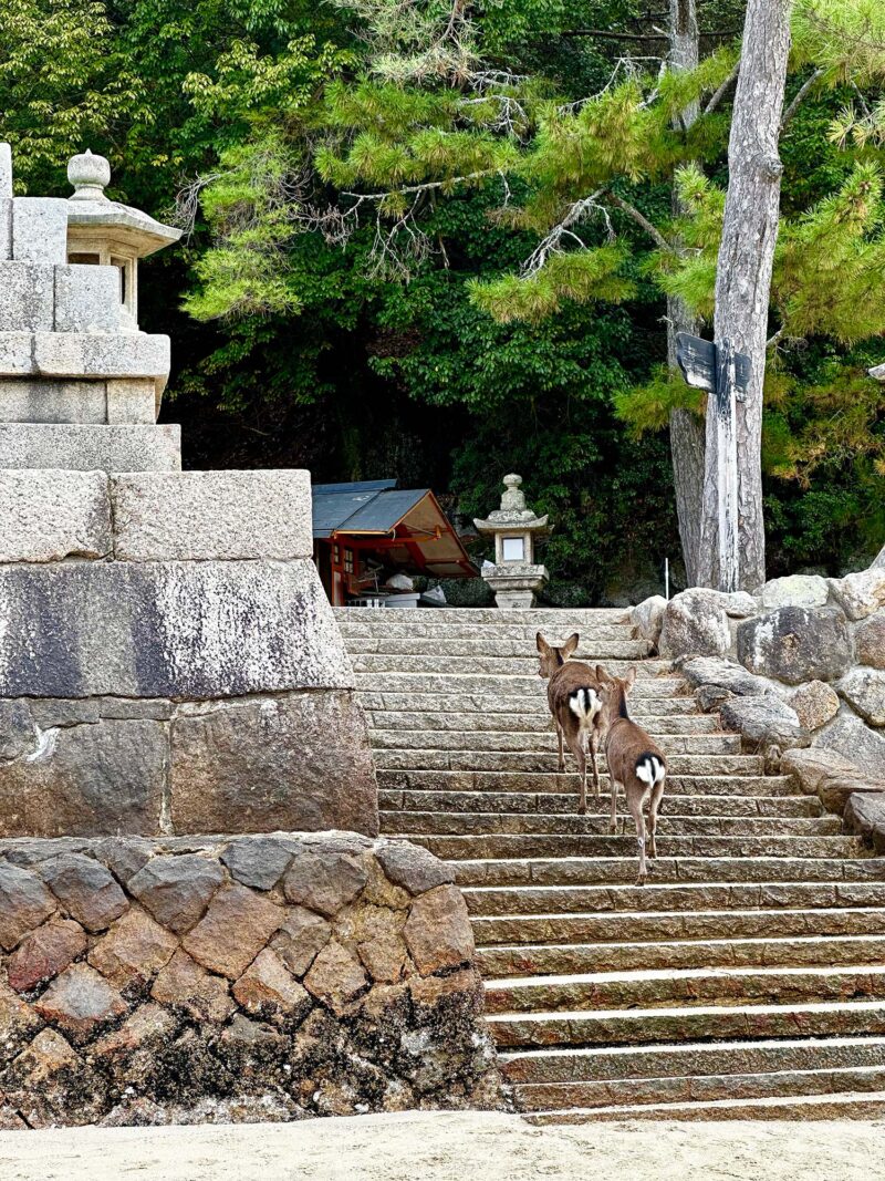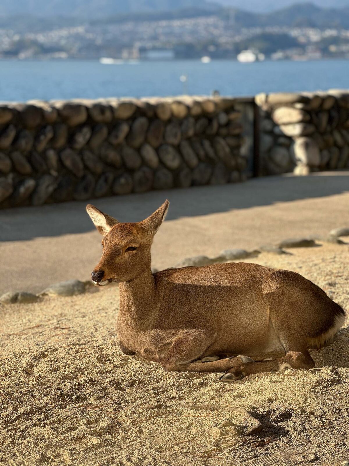 Vanuit Hiroshima maakten we een dagtripje naar Miyajima, een eiland vlakbij. Torii in het water, hertjes die komen snuffelen. We pakten de kabelbaan omhoog, keken neer op zee en eilandjes, genoten van het prachtige uitzicht.