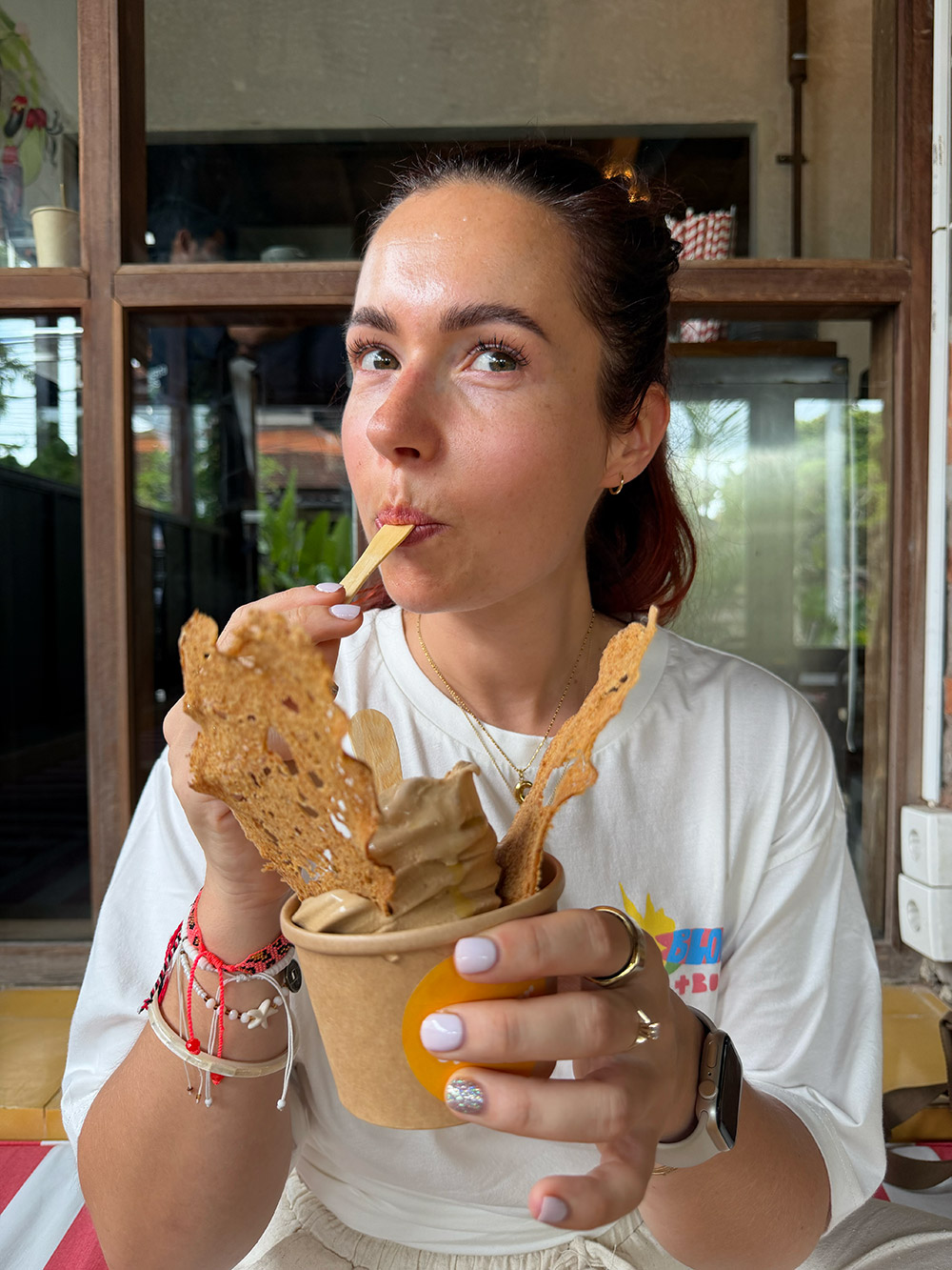Het lijkt nu net alsof we op Bali alleen maar fine dining gedaan hebben, dat is niet zo hoor, dit zijn maar vier dagen van de in totaal 35 dagen dat ik op het eiland was. Maar in Ubud hebben we zeker de wat meer Westerse diner-ervaringen gedaan en dat vonden we ontzettend leuk!