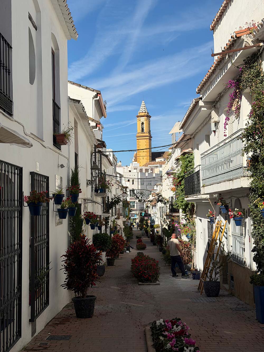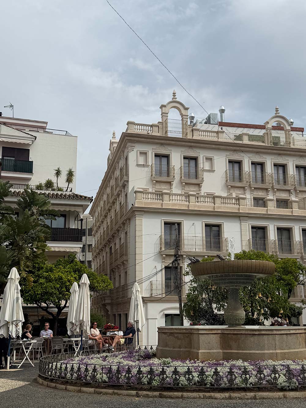 Voor we boodschappen gaan doen stoppen we even in Estepona voor wat te drinken en eten, wat is dit toch een mooie stad.