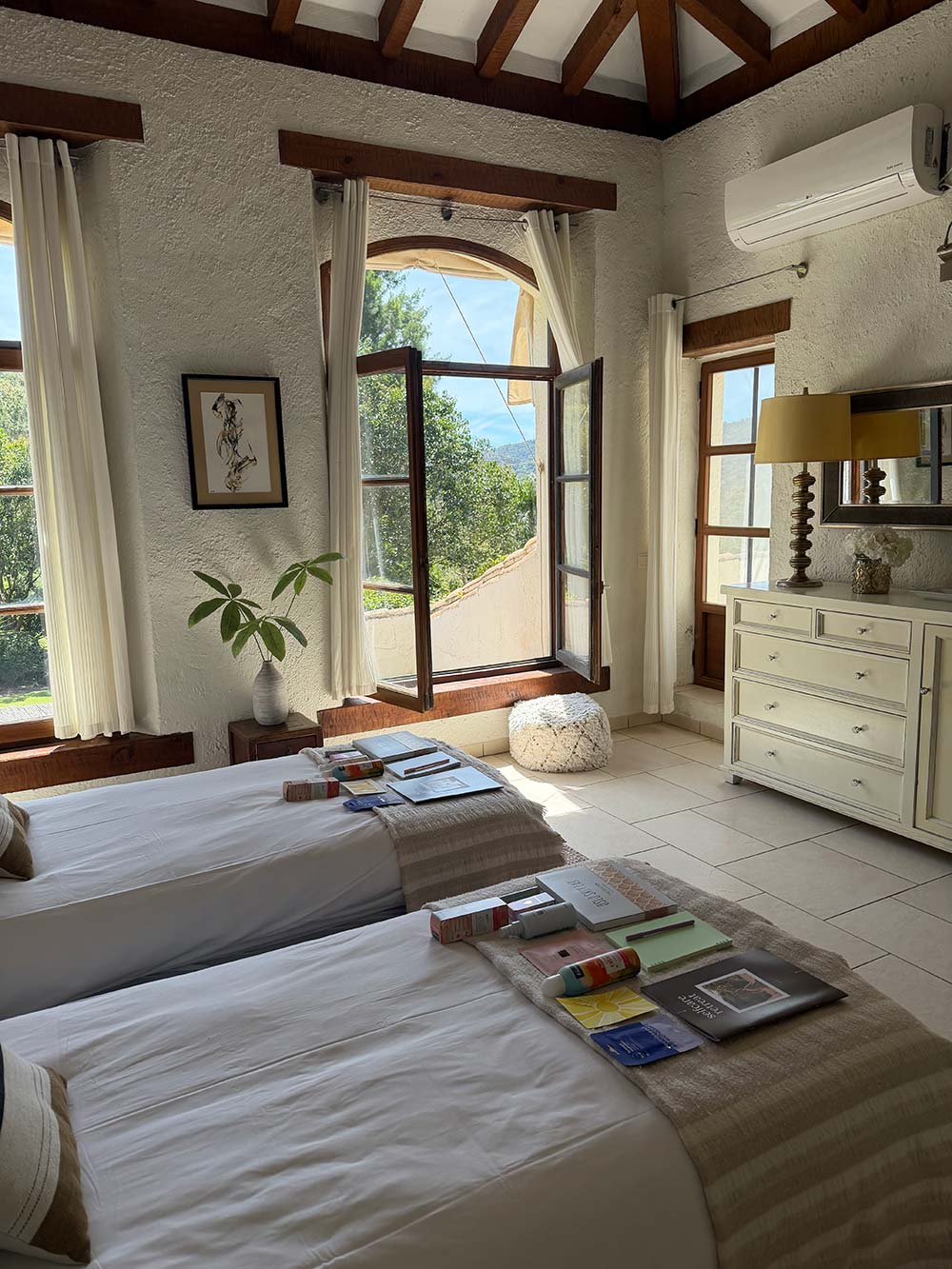 Willem ging deze keer mee op retreat om mij te helpen (en ook om te genieten natuurlijk!) en we kwamen samen twee dagen voor de start van de retreat aan in Spanje. De eerste nacht verbleven we in een hotel aan het strand in Benalmádena, en na die nacht konden we alle voorbereidingen treffen in en om de villa. Het was heel fijn om er weer wat eerder te zijn om zelf ook even te landen – en het is ook wel nodig qua dingen die moeten gebeuren voor zo’n week.