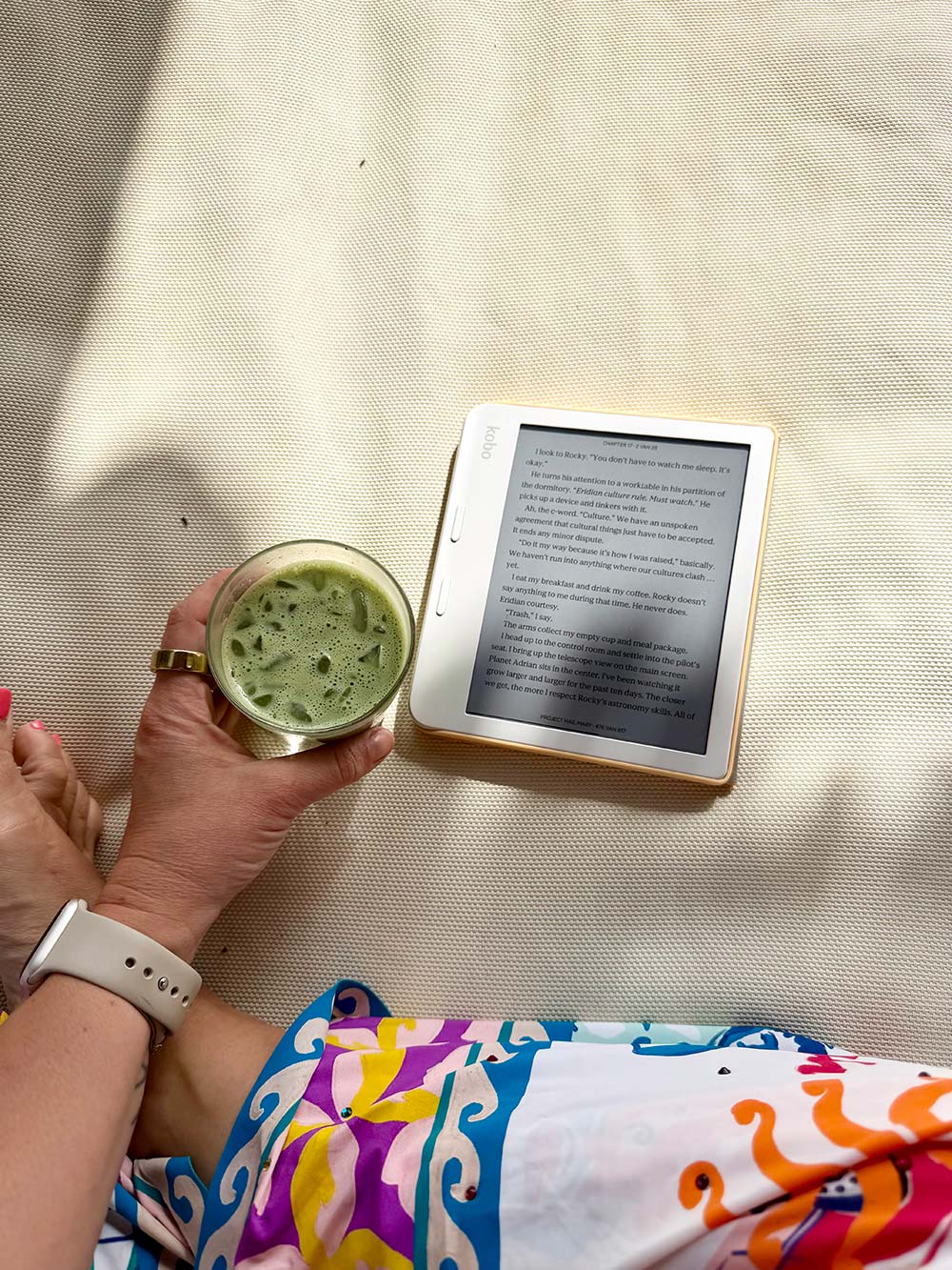 Dit is toch te heerlijk. IN het zwembad lezen.