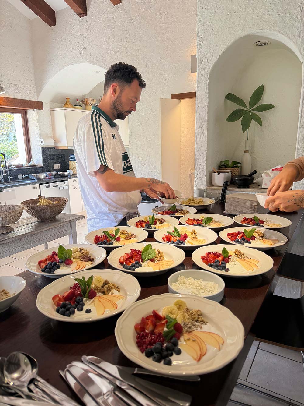 Op deze selfcare retreats in Spanje hebben we altijd onze eigen privé chef mee. Cees maakt drie keer per dag een heerlijke maaltijd voor ons die naast kleurrijk en prachtig ook nog eens voedzaam én lekker is. Wat een feeeeeest.
