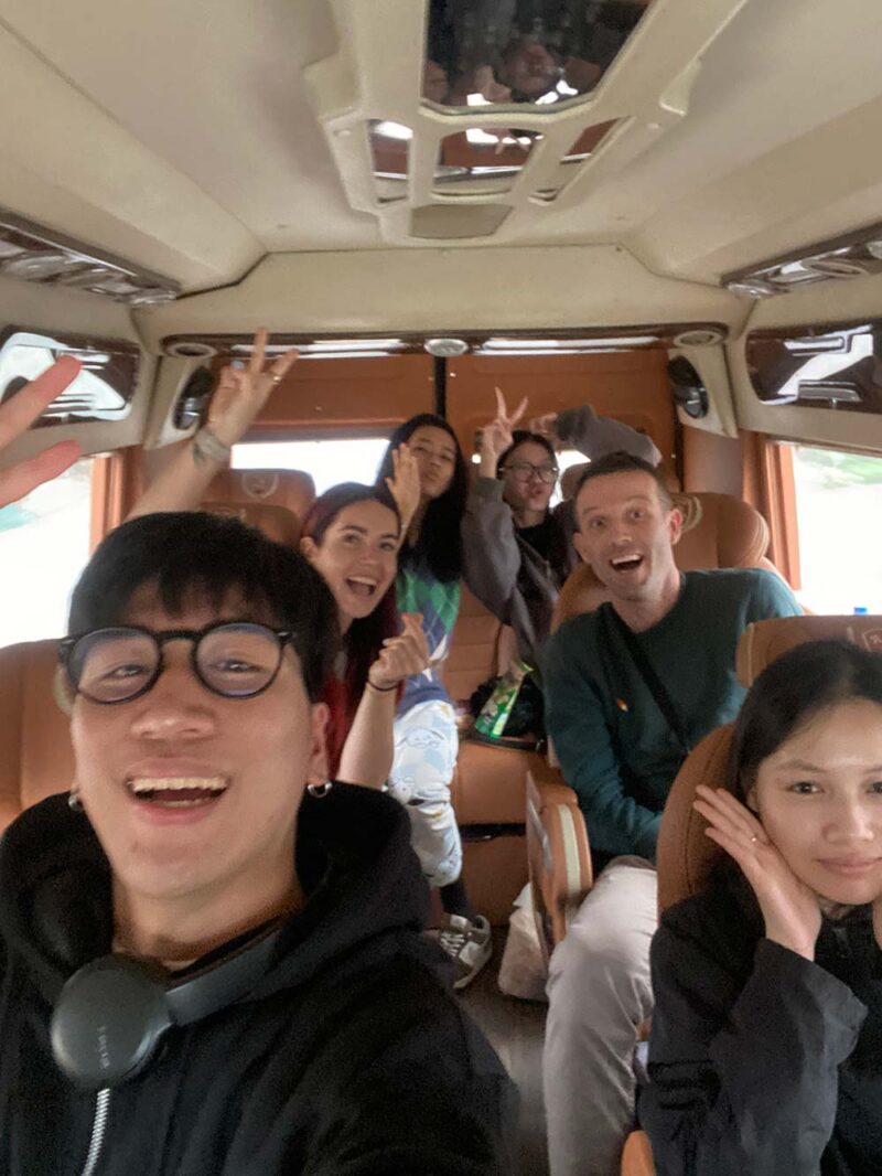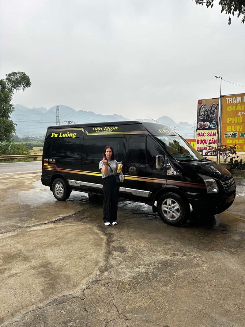 Vanaf Hanoi gingen we met een VIP Limousine busje naar Pu Luong. Deze busjes kan je overal boeken, bij lokale reisbureautjes (die vind je overal wel in Hanoi), of via het hotel. Wij deden het via het hotel. Wij werden opgehaald bij ons hotel en werden bij ons nieuwe hotel afgezet. We betaalden hiervoor in totaal een miljoen dong, want ongeveer €40 is. We deelden ons busje met een vriendengroepje uit Hanoi die naar hetzelfde hotel gingen. Het was comfortabel en heel relaxed om zo te reizen.