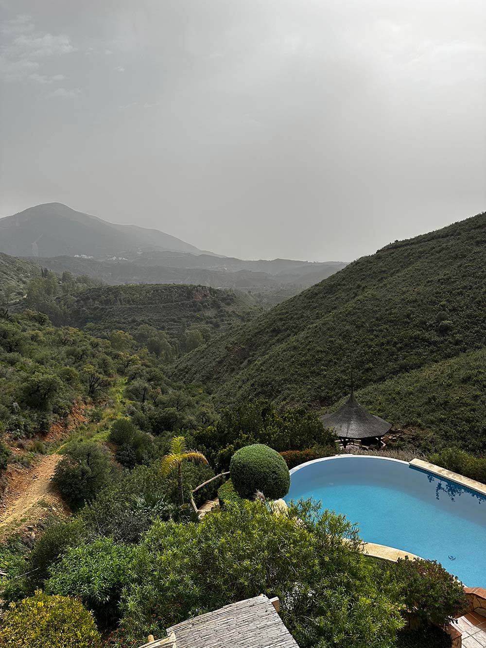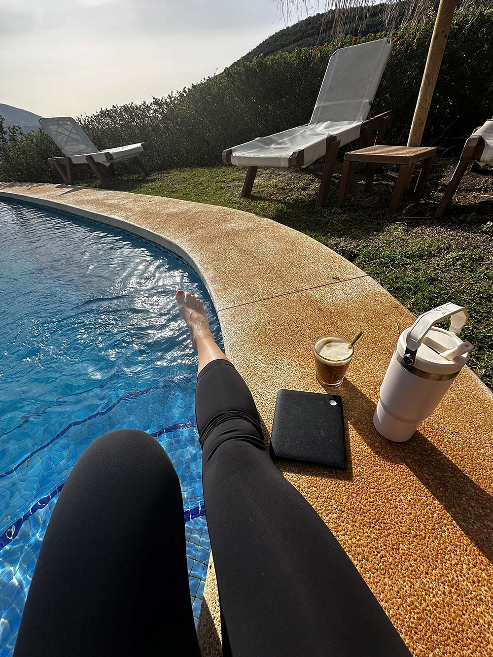 Na de lunch en de welkomst/openingscirkel hebben de vrouwen even tijd om te settelen, ik neem even een momentje bij het zwembad.