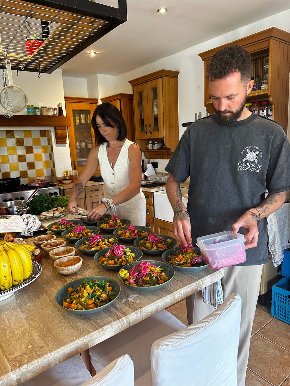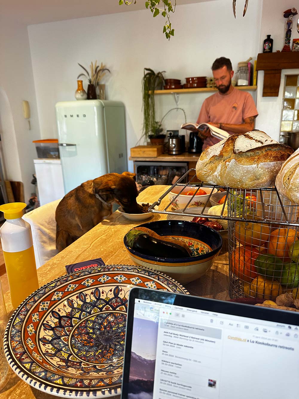 En terwijl we met onze laatste minuten yoga bezig zijn, ruiken we al dat er in de keuken iets heeeel lekkers klaargemaakt wordt.