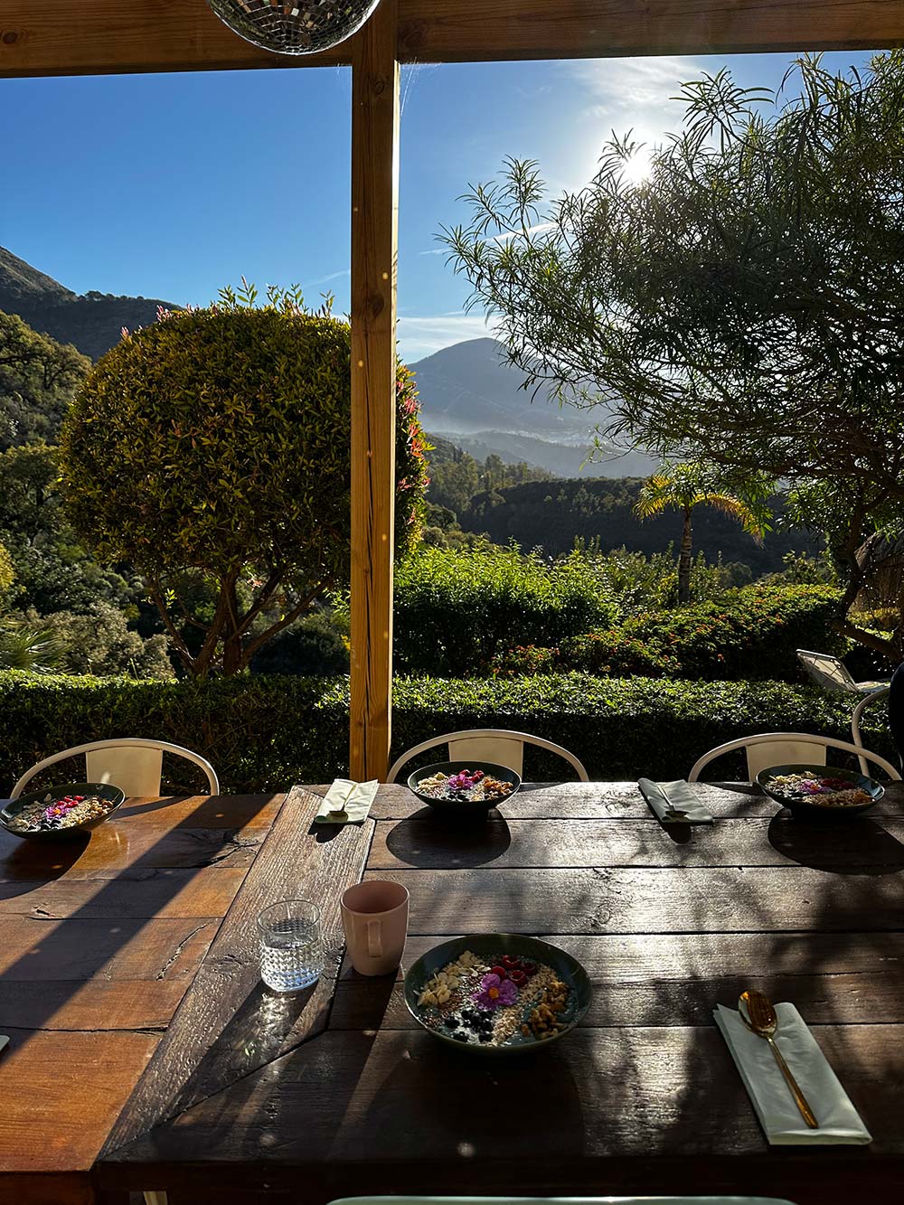 Als we terugkomen, gaan we lekker ontbijten buiten met een smoothie bowl.