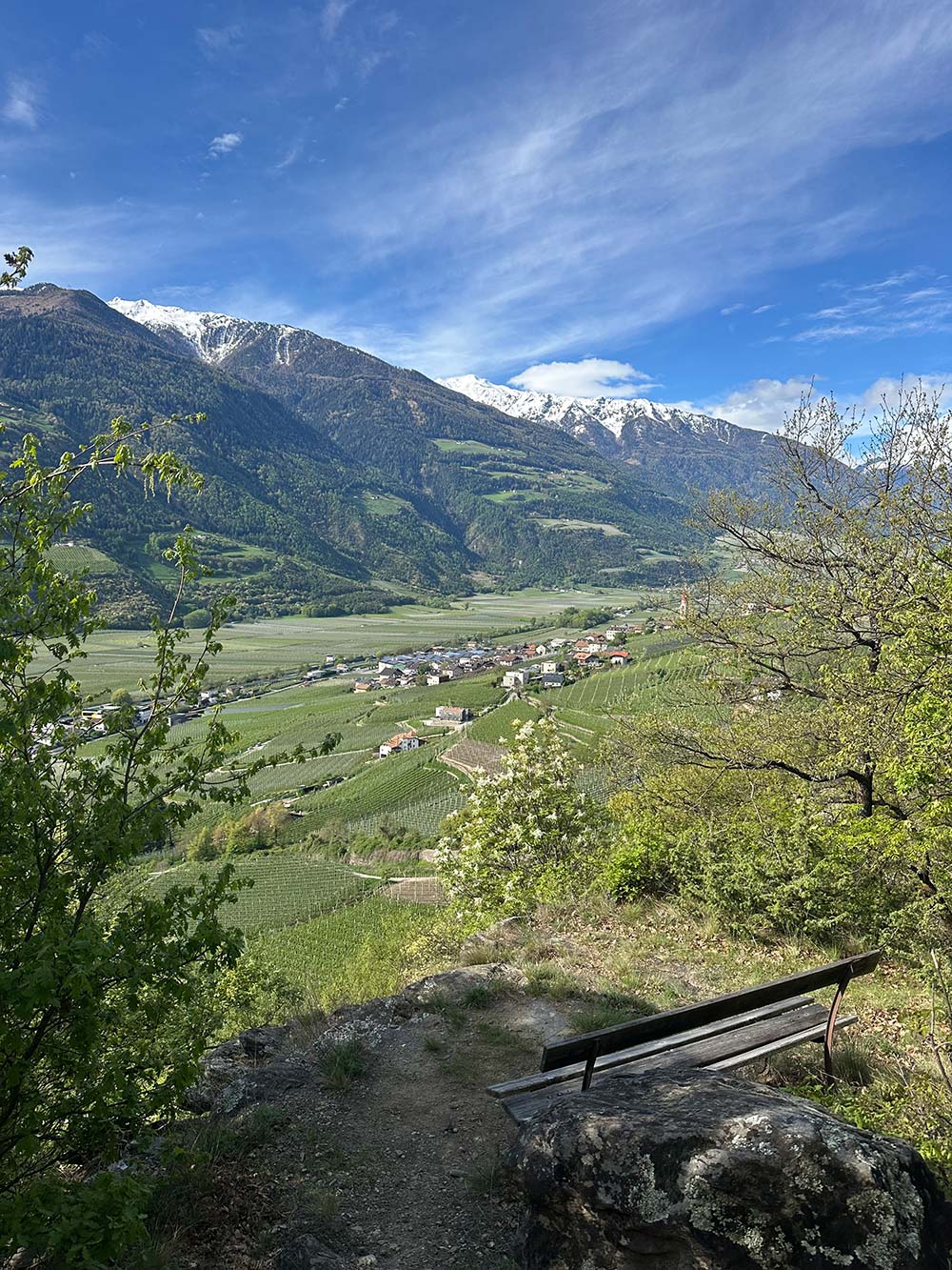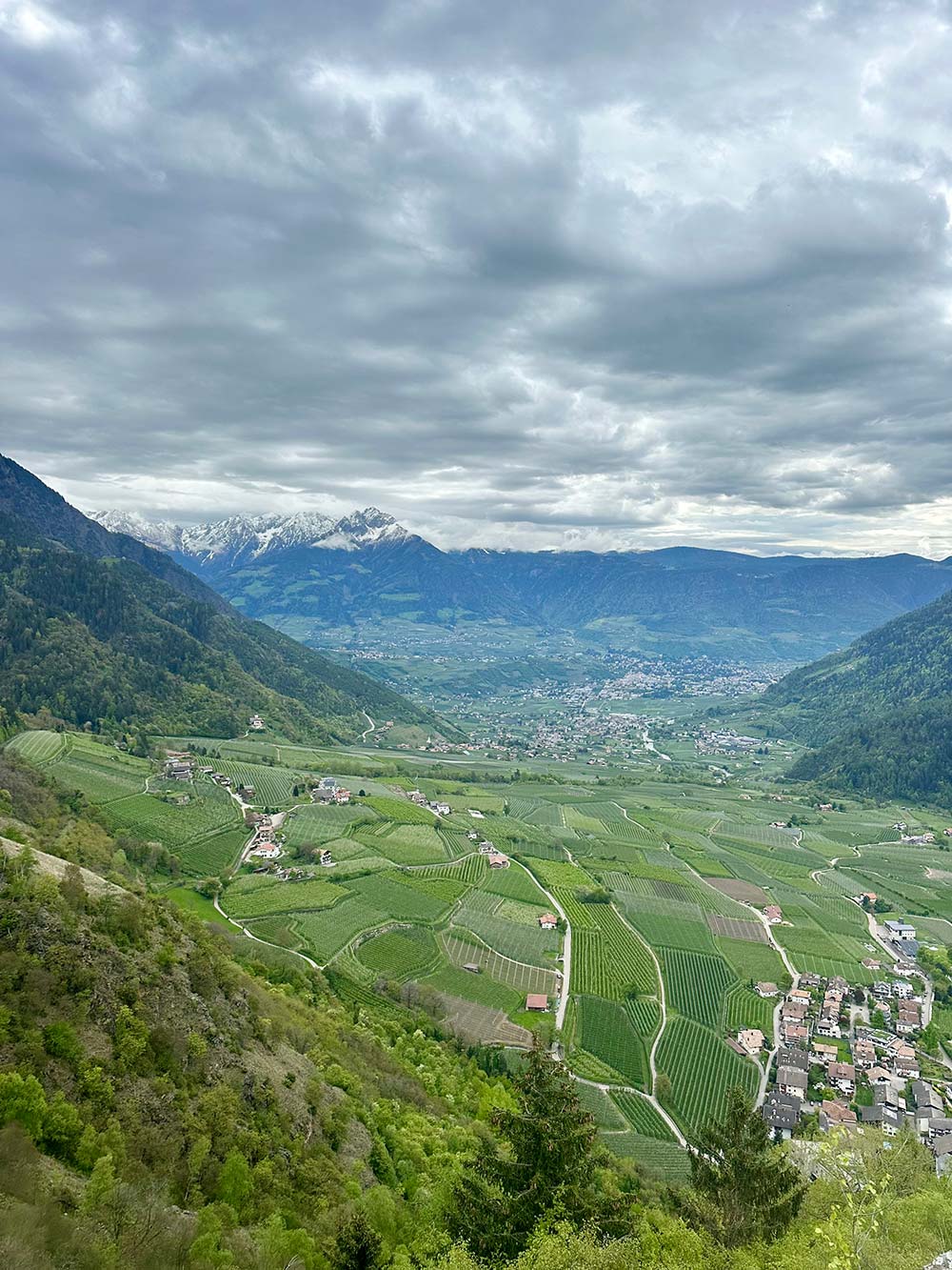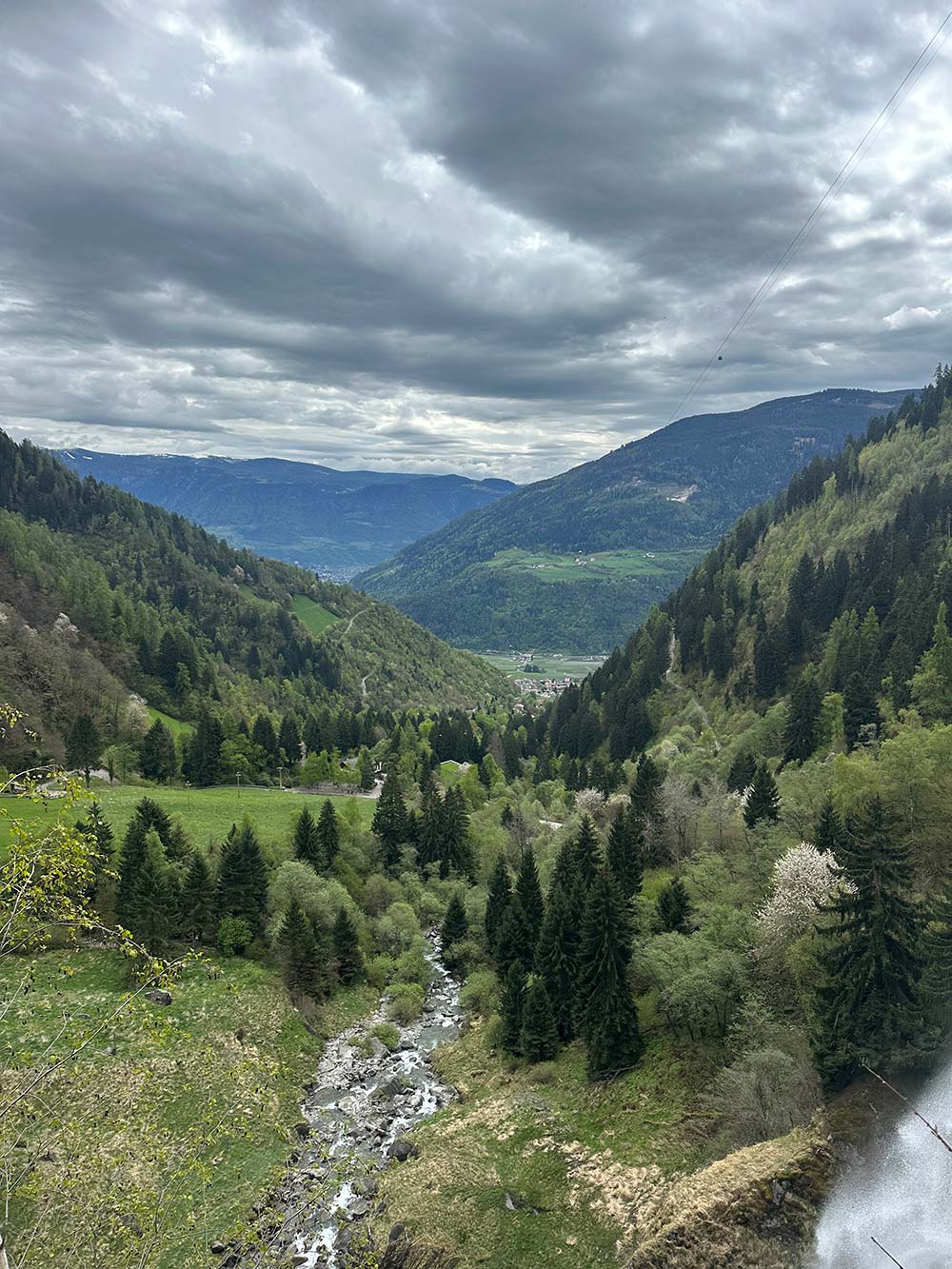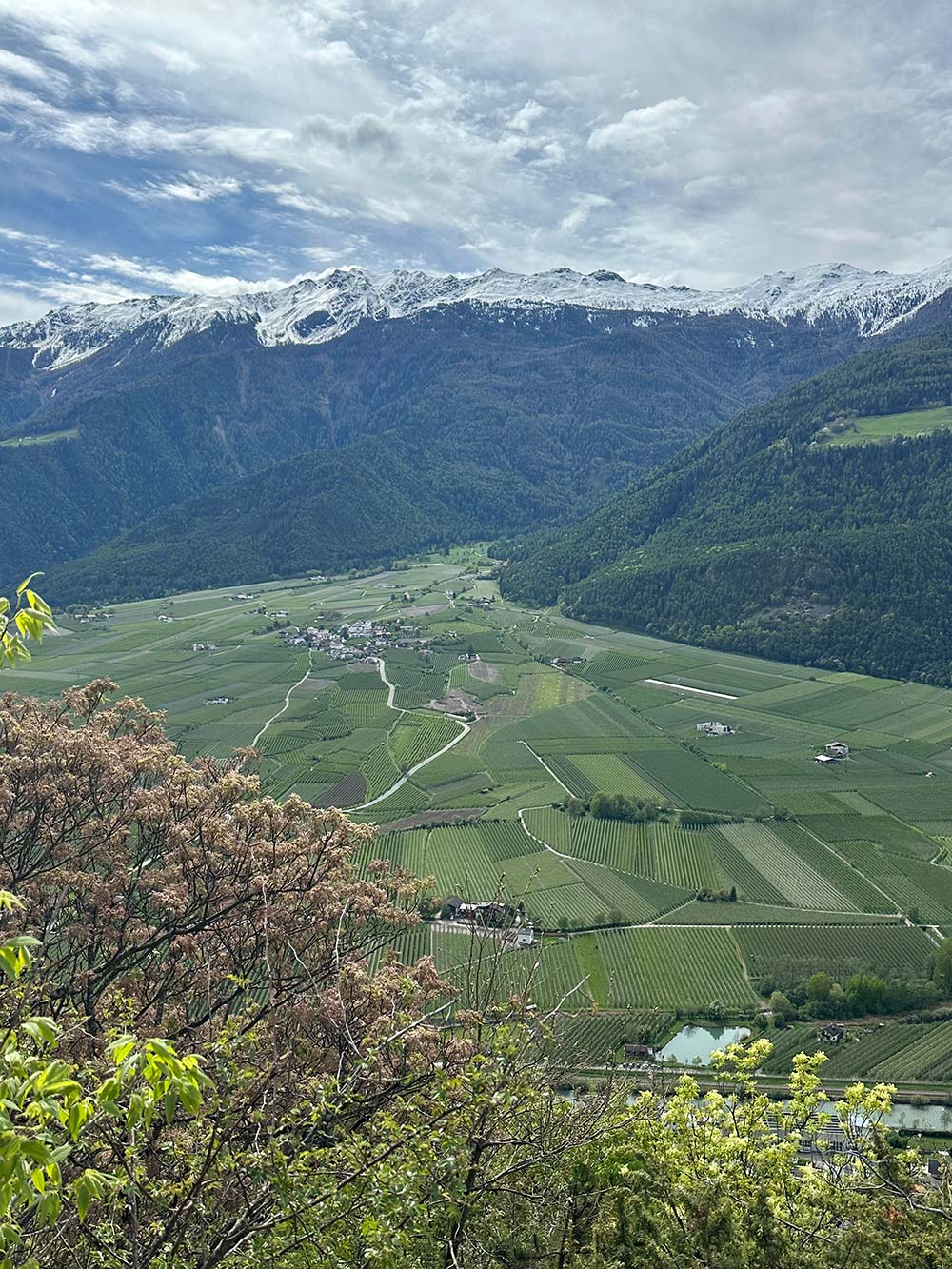 Op onze tweede dag gingen we op pad met David, de andere zoon van de familie Schuler, voor een wandeling over de Waalwege — een netwerk van oude irrigatiekanalen dat je op verschillende plekken in Zuid-Tirol nog steeds kunt vinden. Deze kanalen werden eeuwen geleden aangelegd om smeltwater uit de bergen naar de landbouwgronden in de vallei te leiden. Sommige zijn nog steeds in gebruik, en langs de meeste loopt een smal pad dat perfect is om op te wandelen. De route die we liepen was rustig, groen en vol uitzicht — echt zo’n wandeling waar je hoofd vanzelf leeg van wordt. David vertelde onderweg veel over de geschiedenis van de streek, de natuur en hoe deze paden al generaties lang worden onderhouden. Een fijne, rustige tocht die precies laat zien wat wandelen in Zuid-Tirol zo bijzonder maakt.