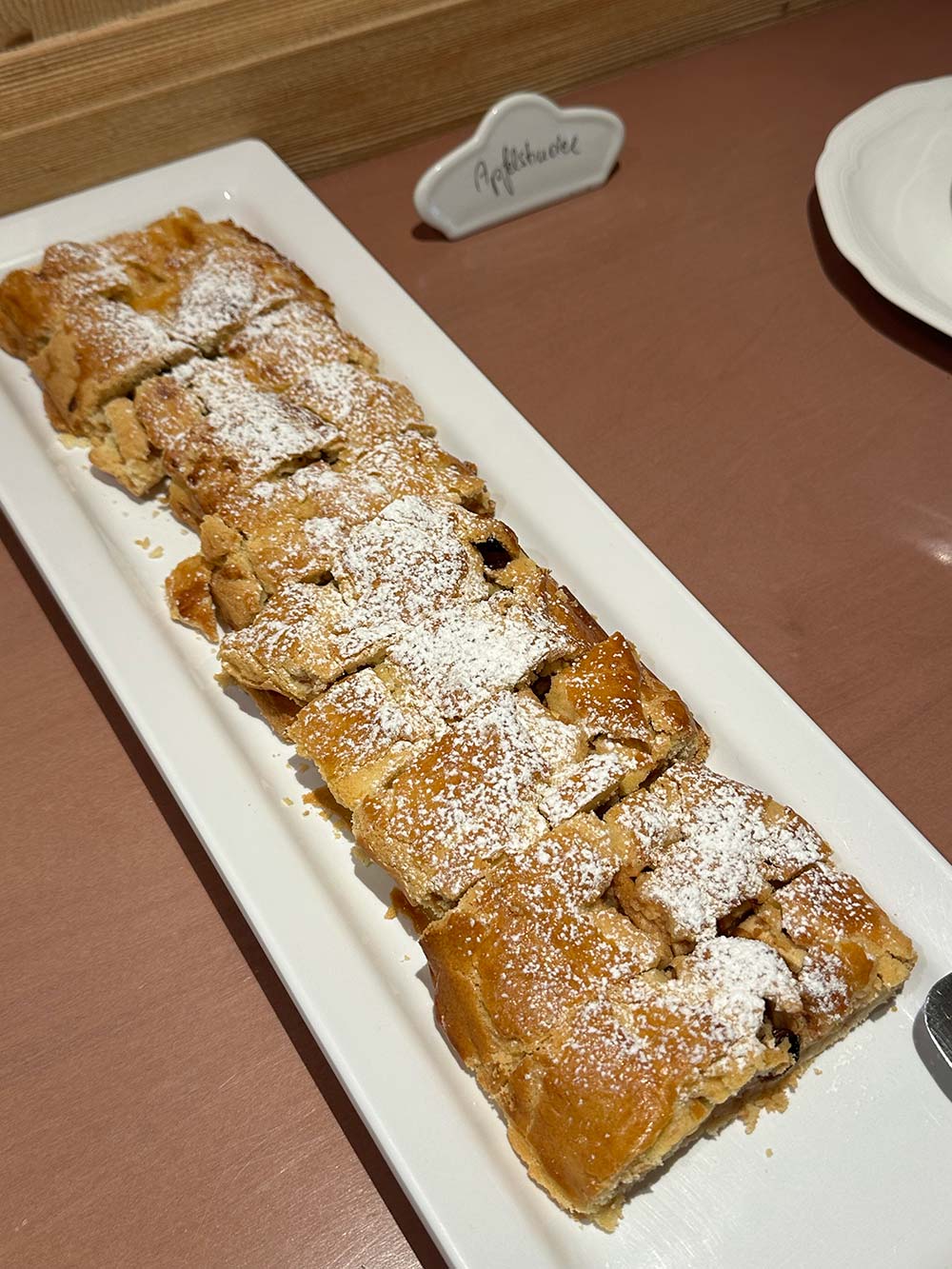 Apfelstrudel in de middag. Ik vind de combinatie van Italiaans en Oostenrijks eten héél leuk.