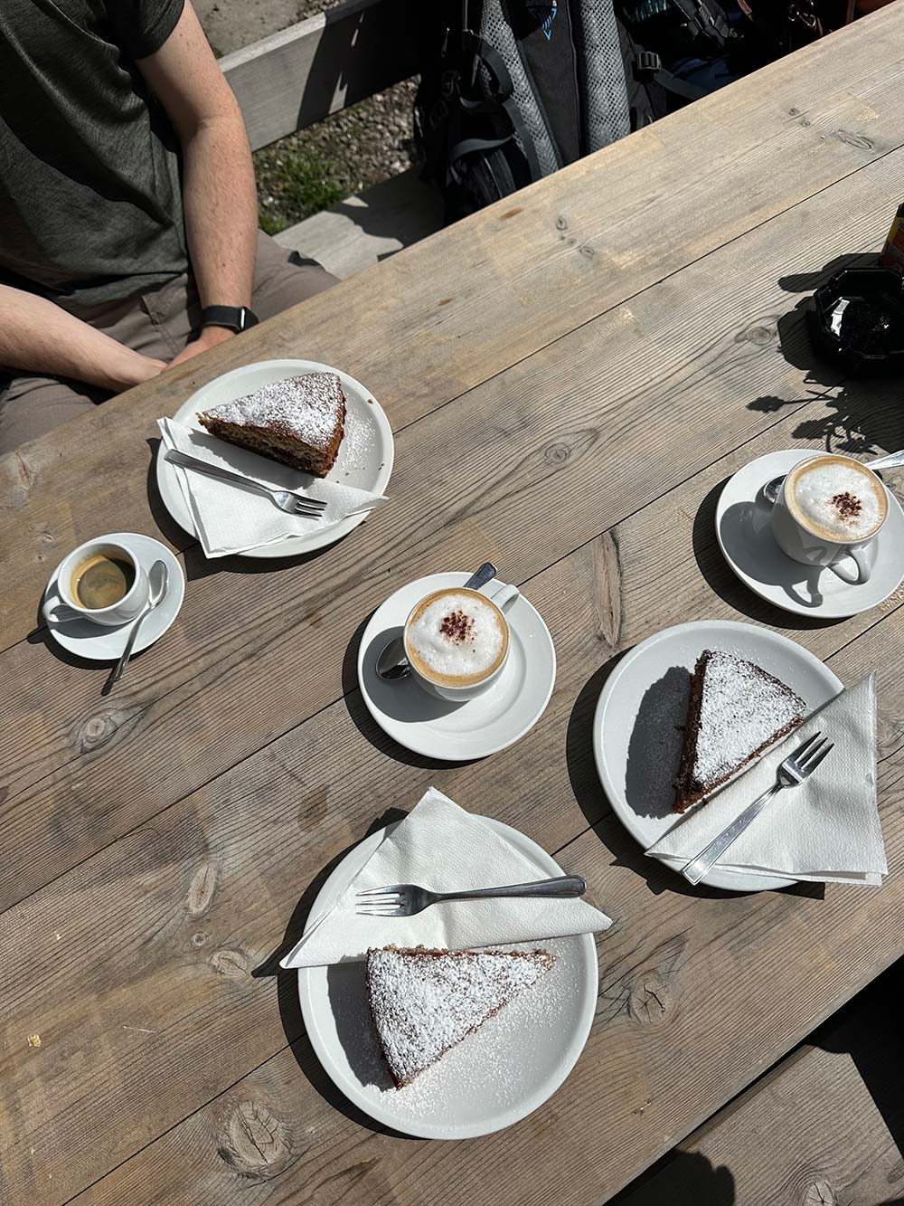 Na het bezoek aan de waterval stopten we bij Dursterhof, een bijzondere plek waar we even op adem konden komen met een kop heerlijke koffie. Het uitzicht vanaf daar is werkelijk indrukwekkend: een panoramisch uitzicht op de omliggende bergen. Bij Dursterhof geniet je niet alleen van de koffie, maar ook van de specialiteit van de dag: Kaiserschmarren én alles met frambozen – want de eigenaar verbouwt zelf frambozen.