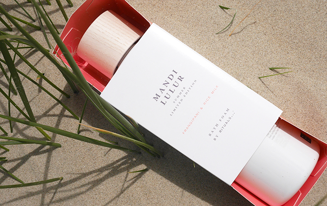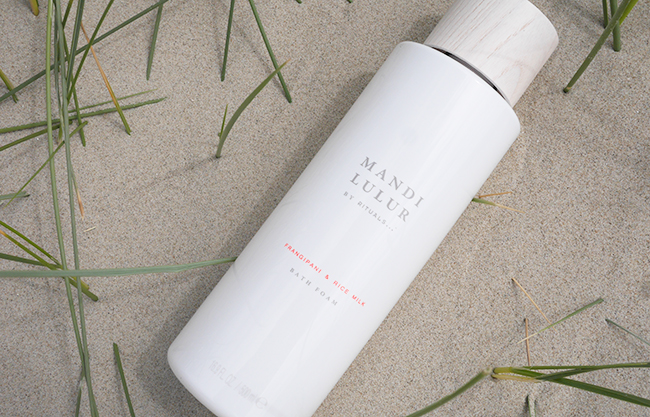 Het badschuim zit in een mooie glanzende witte kunststof fles met een lichtgekleurde houten dop. Ik vind deze verpakkingen echt de mooiste die Rituals tot nu toe heeft gehad. Chic, zomers, strak. Het doet me meteen aan de zomer denken!