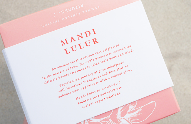 Voor de Mandi Lulur collectie deed Rituals trouwens inspiratie op bij de schoonheidsceremonie voor Javaanse prinsessen. Al eeuwen bereiden ze zich zo voor op het huwelijk. Alle producten in de collectie hebben een geur van frangipani en rijstemelk, die licht zoet en bloemig is. Perfect voor de zomer, want hij is niet té aanwezig.