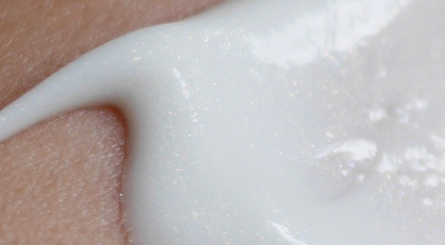 Hier zie je de kleine glittertjes goed. Ze zijn niet zichtbaar op de huid, maar je ziet wél een mooie subtiele glans. Heel erg mooi na een zomerse dag tijdens een etentje. Zo’n glansje bij je decolleté, op je armen en benen is dan wel heel erg mooi, en je ziet er toch altijd wat zomerser uit met een gehydrateerde, glanzende huid. De body cream voelt heel erg prettig aan op mijn huid, super zacht, verdeeld gemakkelijk en trekt razendsnel in. De geur is subtiel aanwezig.
