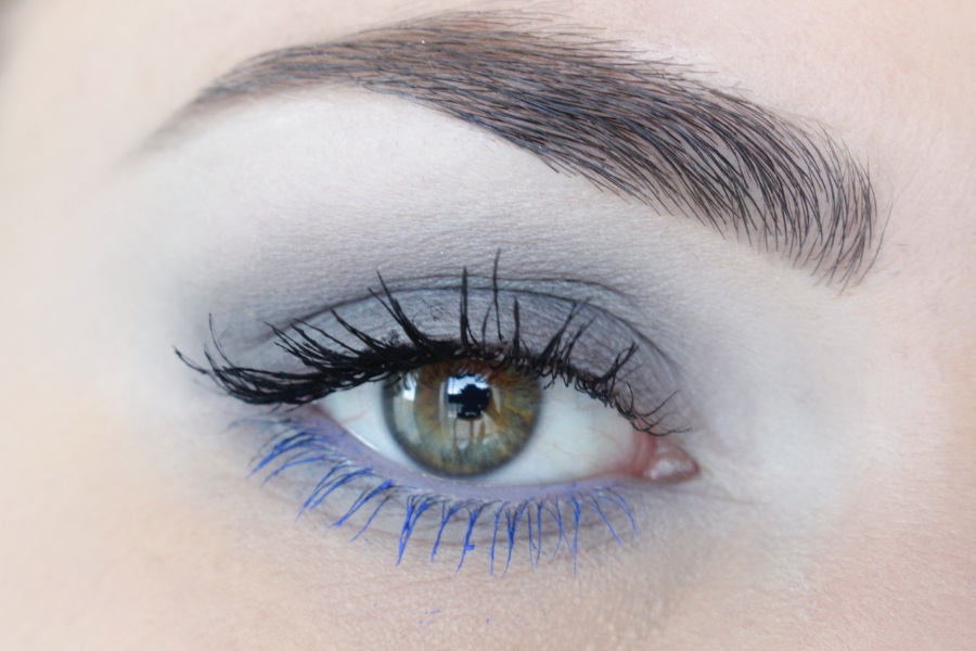Daarna breng ik mascara aan. Zwart op de bovenste wimpers, en blauw op de onderste.