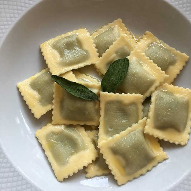 Ik moet kiezen uit twee: verse ravioli met peer en ricotta met salieboter bij De Koevoet in Amsterdam of ravioli met ricotta en spinazie met salieboter bij Burro e Salvia in Den Haag… Dan kies ik toch voor de Koevoet omdat ik dat zo’n fantastisch Italiaans restaurant vindt en de rest van het eten en de pasta’s daar ook zó lekker is. Nu ik er over schrijf loopt het water me in de mond – ik wil het!